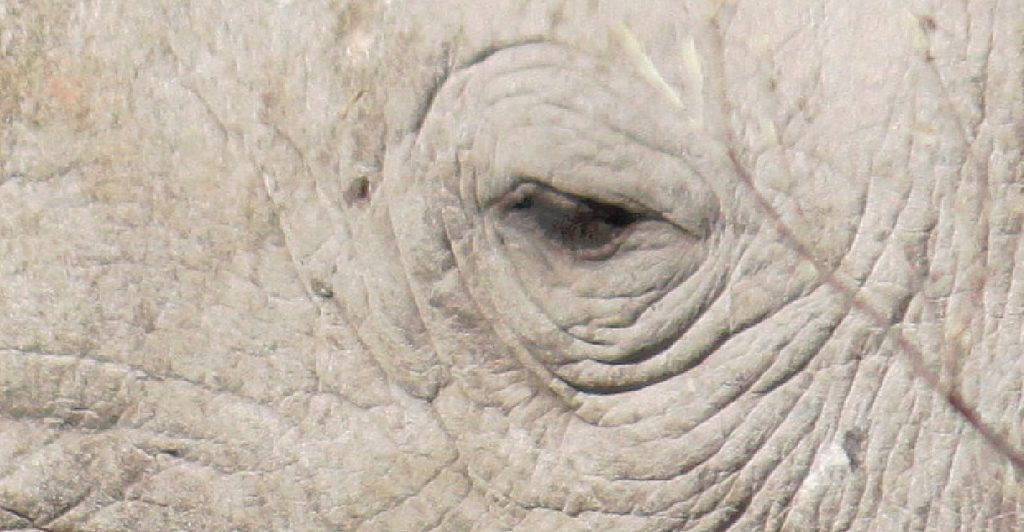 Eye to eye with a Rhino just around the corner where we had changed tires…
